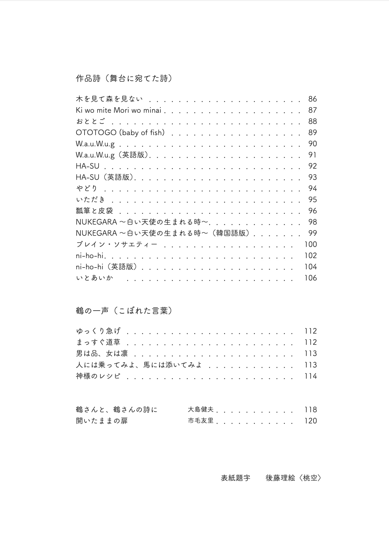 表紙題字:後藤理絵 <桃空>